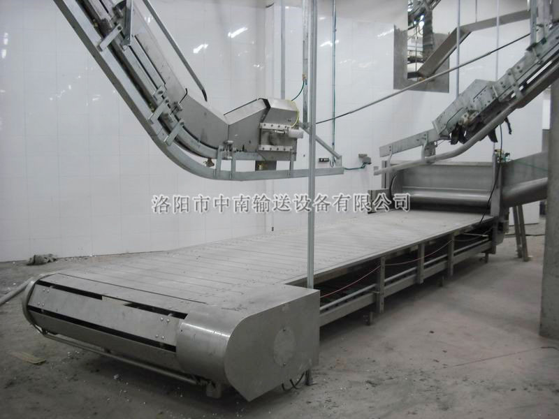 平板輸送機(jī):該機(jī)用于麻電后的牲豬輸送, 上掛至放血線的配套設(shè)備。該機(jī)主要由機(jī)架、電機(jī)、減速機(jī)、板鏈、鏈輪,拖輥等部件構(gòu)成,具有結(jié)構(gòu)簡(jiǎn)單、運(yùn)轉(zhuǎn)平穩(wěn),維修方便等優(yōu)點(diǎn)。是大、中型屠宰加工廠不可缺少的設(shè)備。