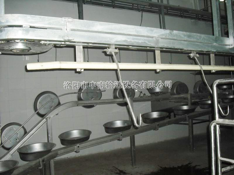 同步衛(wèi)檢線可分為:落地式和懸掛式。將屠體的頭、腸、胃、心、肝與胴體同步對(duì)好檢驗(yàn),紅臟與白臟懸掛在衛(wèi)檢線上,按設(shè)定的速度與胴體加工線同步運(yùn)行,由人工對(duì)內(nèi)臟進(jìn)行充分檢驗(yàn)檢疫,,這樣既保證了肉質(zhì)的衛(wèi)生質(zhì)量,又符合國家有關(guān)衛(wèi)生檢測(cè)標(biāo)準(zhǔn)。該設(shè)備運(yùn)行平穩(wěn),同步準(zhǔn)確,是屠宰加工中不可缺少的裝置之一。